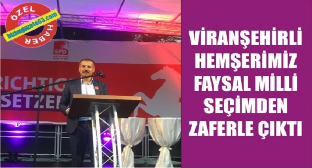 Bir dönem Viranşehir'de Anavatan Partisi Viranşehir İlçe Başkanlığı yapmış olan Halil Milli'nin oğlu olan Faysal Milli gurbetçilerinde desteği ile Almanya'da hükümet ortağı olan SPD Partisinden Belediye encümeni seçilerek büyük bir başarı gösterdi. Alman Kuzey Saksonya Eyaleti Norden şehri Belediye encümen seçimleri geçtiğimiz günlerde yapılmıştı. Yapılan bu seçimlerde Viranşehirli hemşerimiz Faysal Milli Belediye encümeni seçilerek orada yaşayan gurbetçilerin gururu oldu. Avrupa Parlamento Başkanı Martin Schulz'un da partisi olan SPD'den seçilen Faysal Milli'yi kutlayanlar arasında bu isimde yer aldı. Başta Viranşehirliler olmak üzere orada yaşayan vatandaşlarımızdan tebrik telefonları alan Faysal Milli Gazetemiz aracılığı ile tüm Viranşehir halkına selam gönderdi. 07-10-2016