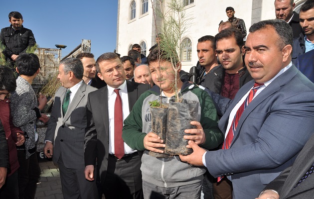 Viranşehir genelinde ekilmek üzere Öğrenci sayısı kadar Çam ve Badem ağacı dağıtımı için Kaymakamlık binası önünde bir tören yapıldı.