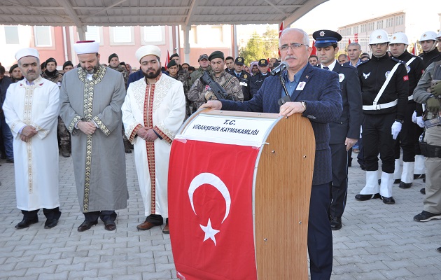 Şehidin Cenazesine Şanlıurfa Valisi Güngör Azim Tuna, İl Emniyet Müdürü Veysal Tipioğlu, İl Jandarma Alay Komutanı, Viranşehir Kaymakamı Ömer Çimşit, İl Birim amirleri, Viranşehir İlçe Birim amirleri, Ak Parti Şanlıurfa İl Başkanı, Viranşehir'de bulunan Siyasi Partilerin temsilcileri, STK Başkanları ve kalabalık bir halk kitlesi katıldı. Törende konuşan İl Emniyet Müdürü Veysal Tipioğlu" Kalleşçe ve kahpece yapılan bu Terör saldırısı sonucu 2 Şehit verdik. Bunların kökünü kazımakta kararlıyız nitekim artık son kozlarını oynuyorlar. Muvaffak olamayacaklar" dedi. Şanlıurfa Valisi Güngör Azim Tuna ise" Şehitlik makamına eren İbrahim Kete'ye yüce Allah'tan Rahmet ailesine başsağlığı diliyorum. Terör hiç bir zaman amacına ulaşmayacak. Dün itibarı ile 11 yaşında ki Ahmet yavrumuzu toprağa verdik. Zaten masum olan bu yavrumuz Şehitlik mertebesine ulaştı. Ben tekrar Şehit ailelerine başsağlığı diliyorum" dedi. Konuşmaların ardından İl Müftüsü İhsan Açık'ın yaptığı dua sonrasında cenaze karatepe Mahallesinde defnedilmek üzere cenaze arabasına konuldu. Bu sırada halk tekbirler getirdi. Şehitler Ölmez Vatan bölünmez ve Kahrolsun pkk sloganları attı. Viranşehir Hükümet konağında yapılan tören sona erdi. 19-02-2017