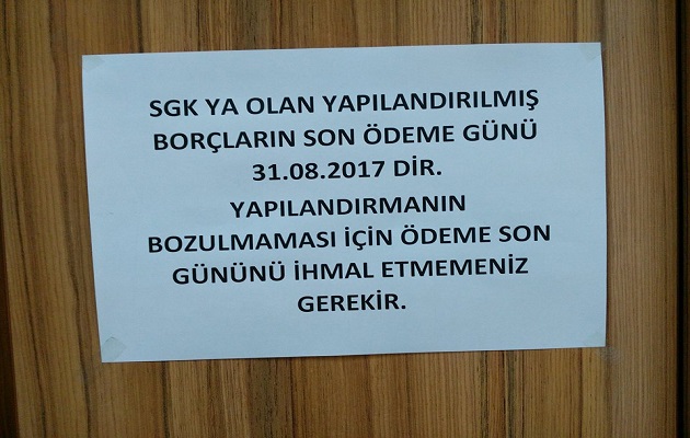 Ziyaret çerçevesinde halkımızı bilgilendirmek adına ilgili birimlerin Müdürleri ile görüşüp son çalışmalar hakkında bilgi aldık ve alınan bu bilgiyi halkımız ile paylaşarak bilgilendirmeyi amaçladık. Buna göre vatandaşlarımızın SGK ile ilgili borç yapılandırma başvurusu sonucu ödemesi gereken taksidini bu ayın sonuna kadar ödemesi gerekiyor. 31 Ağustos 2017 Perşembe gününe kadar vatandaşlarımız yapılandırdıkları borçlarının taksidini bu tarihe kadar SGK nın anlaşmalı olduğu bankalara yatırması gerekiyor.